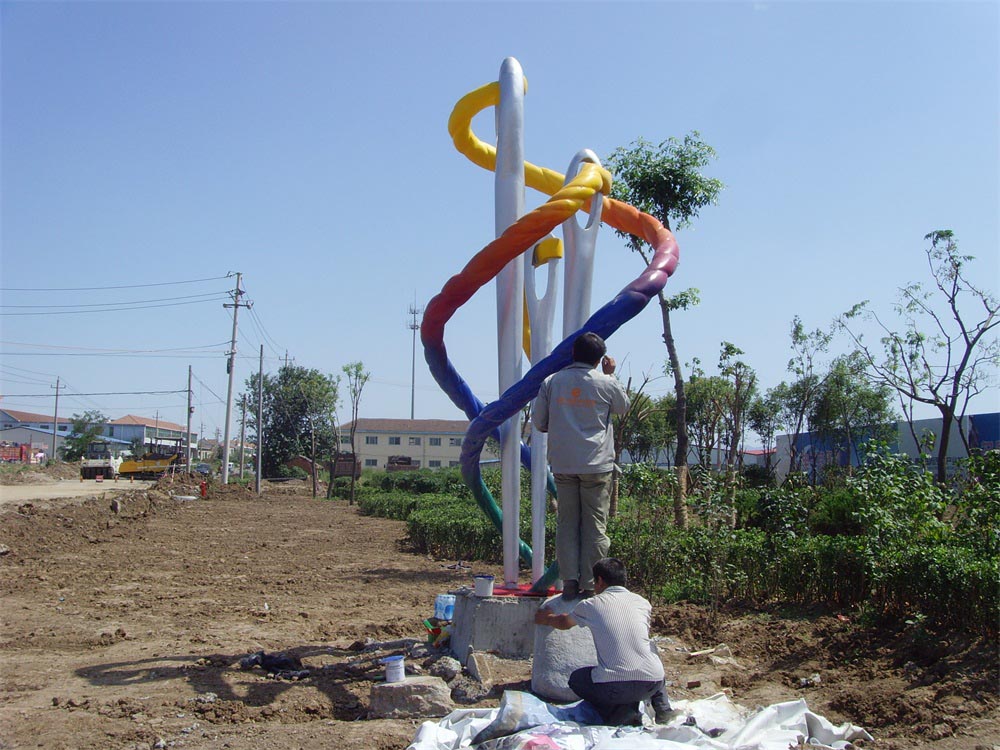 本項目包括:不銹鋼雕塑——“舞”,不銹鋼雕塑——“針線之美”,不銹鋼雕塑——“凌空之剪”,玻璃鋼雕塑——“美人之座”,玻璃鋼雕塑——“紐扣座椅”。制作歷時2個月。