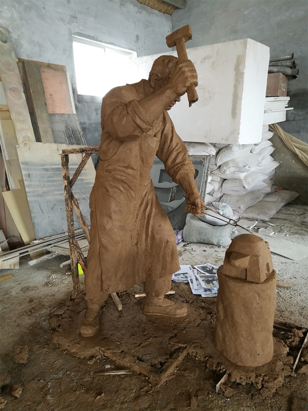 雕塑說明:騎馬將軍雕塑高2.6米,成品為玻璃鋼工藝制作。該組雕塑是雕塑公司拋開市場環(huán)境,真正藝術(shù)化創(chuàng)作的珍貴作品。打鐵匠雕塑,高1.9米,同樣采用玻璃鋼工藝制作。兩組雕塑的泥塑均有雕塑師張凱完成。未經(jīng)允許,嚴(yán)禁把本相冊圖片用于商業(yè)用途。