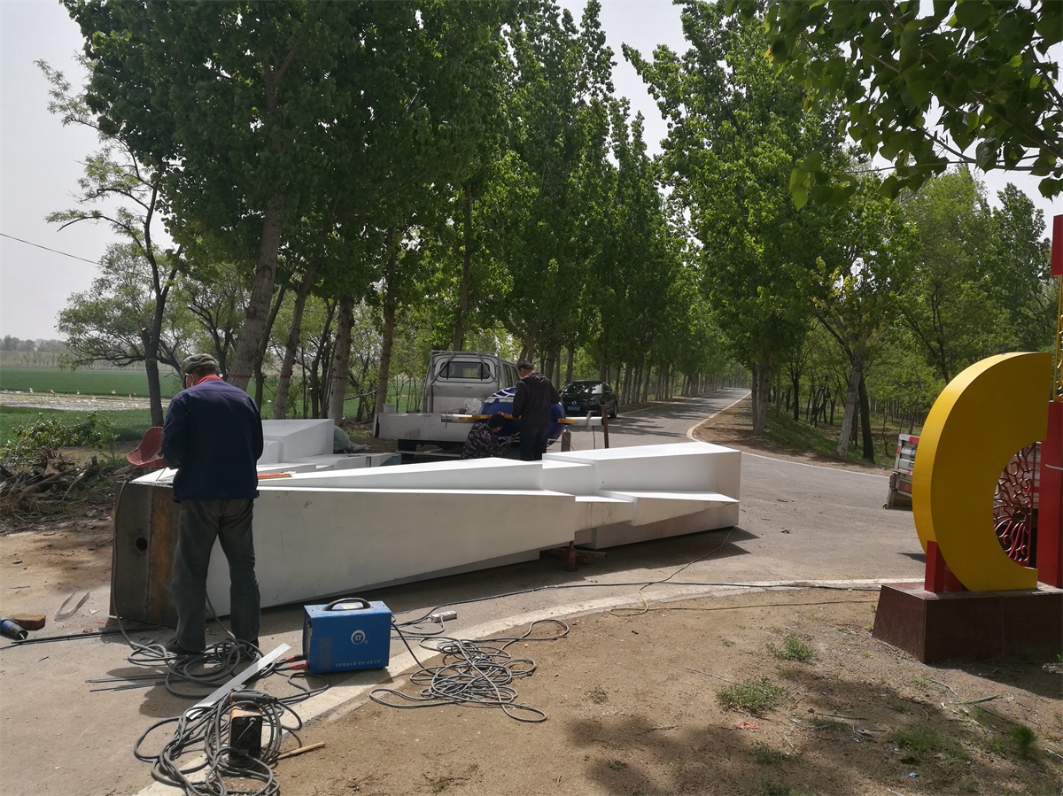 雕塑整體呈扇形構(gòu)造,代表黃河三角洲扇形外貌;兩側(cè)形似利劍,寓意治黃工作者敢于“亮劍”的拼搏精神; 中間球形,寓頂點(diǎn)之意;其上印制有黃河水利委員會(huì)標(biāo)志,圍繞十只和平鴿。寓意以治黃事業(yè)為中心、人民幸福、和平安寧、生態(tài)保護(hù)、空間均衡;主體色彩以紅、黃、藍(lán)搭配。紅色代表黨建引領(lǐng),黃、藍(lán)象征海河交匯。寓意治黃事業(yè)在中國共產(chǎn)領(lǐng)導(dǎo)下開創(chuàng)新篇章。