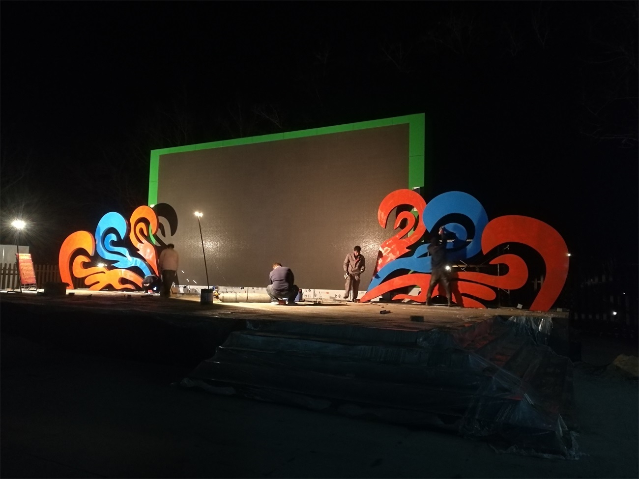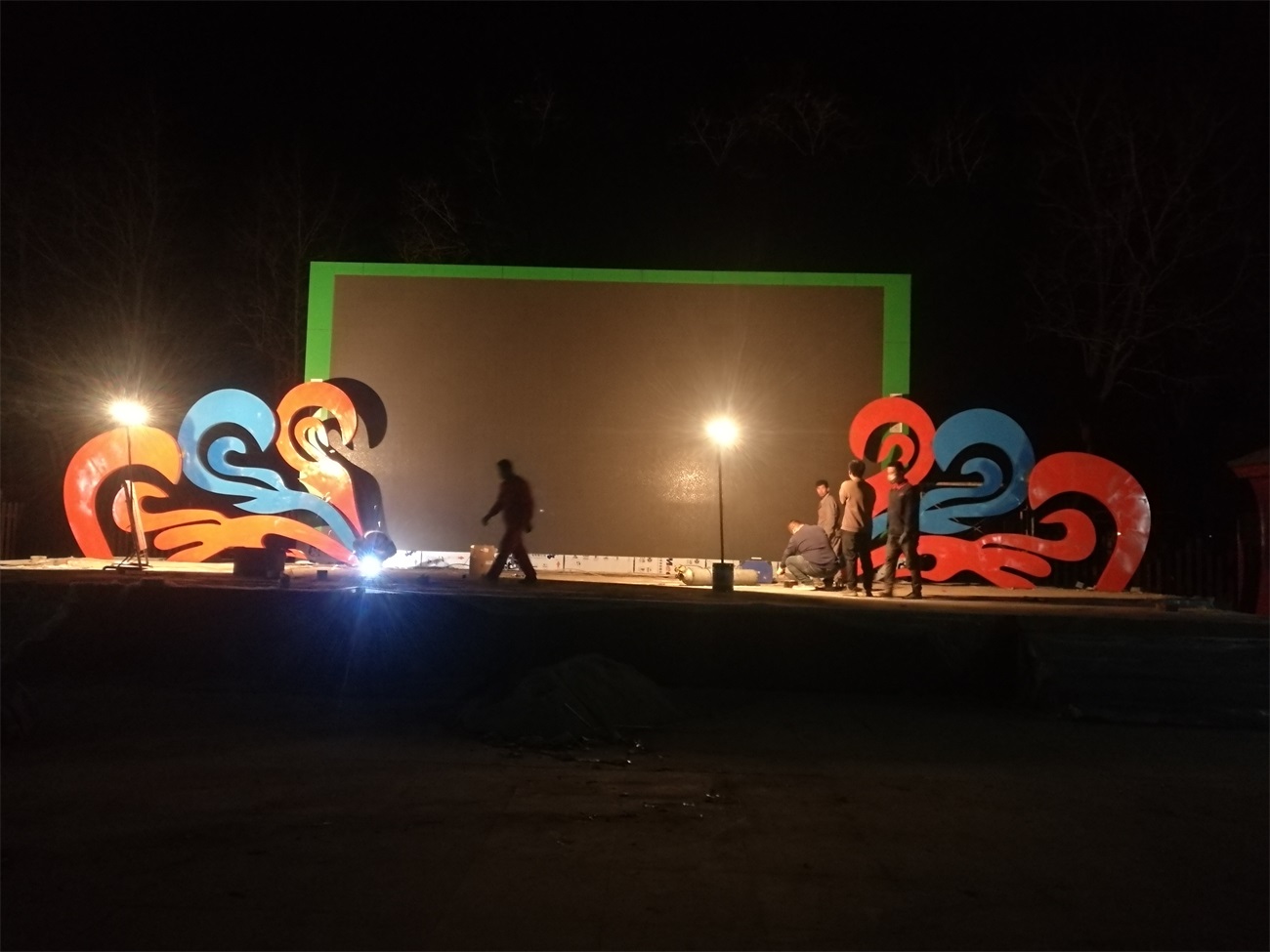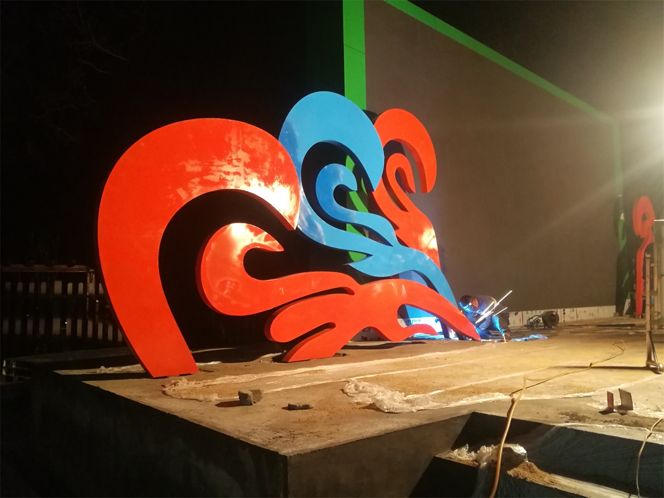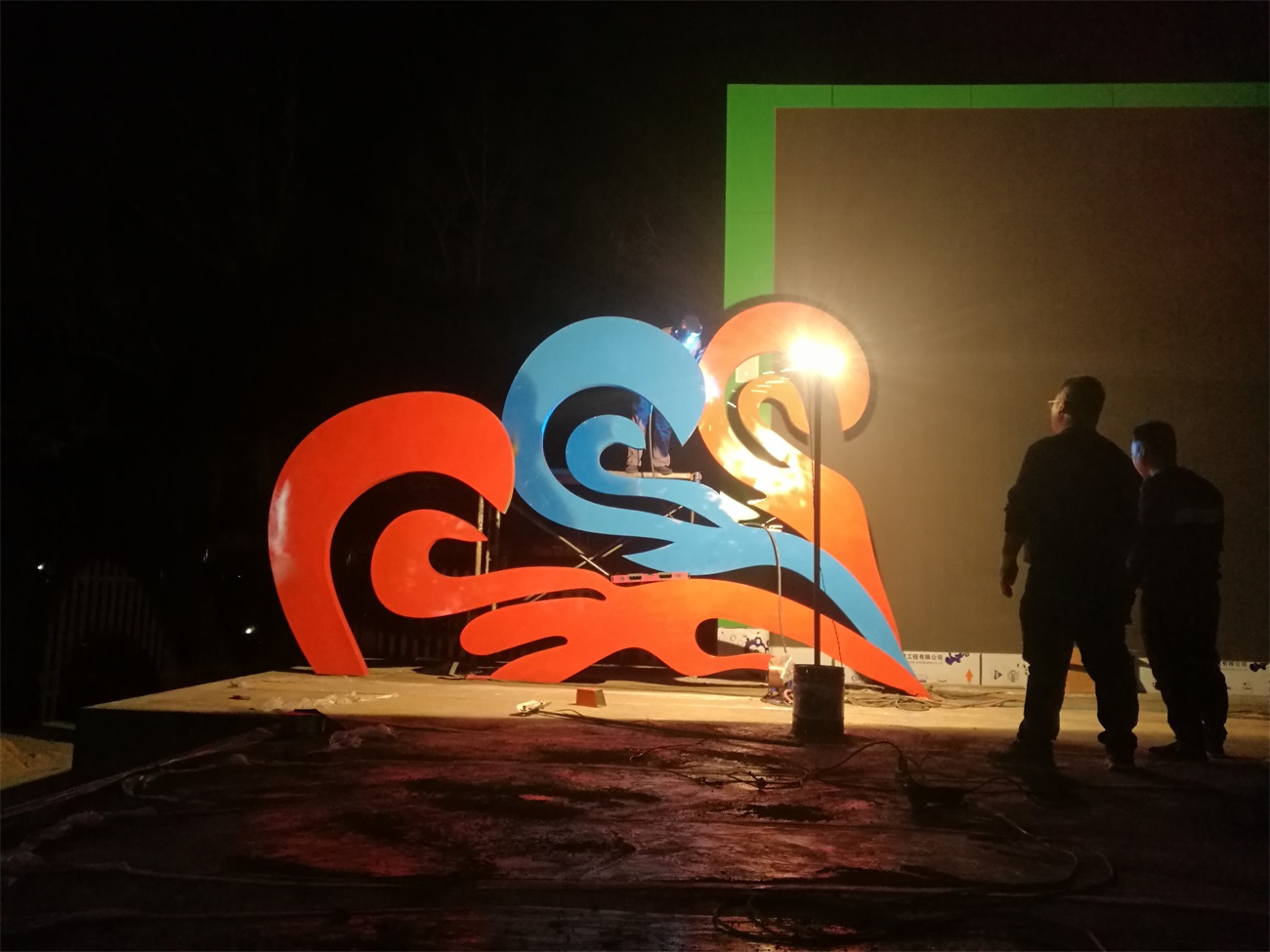 打漁張景區(qū)游客中心大舞臺不銹鋼造型雕塑