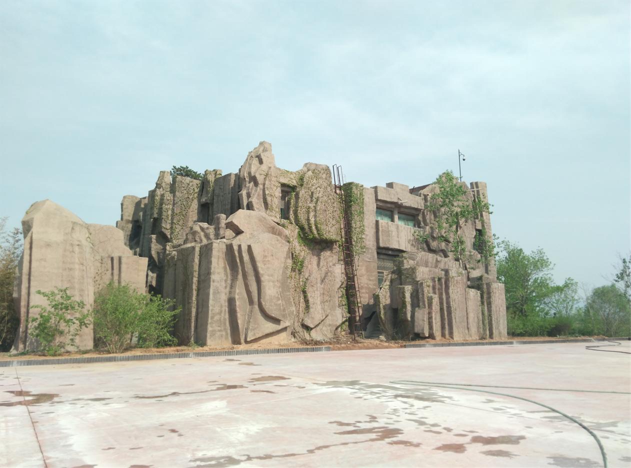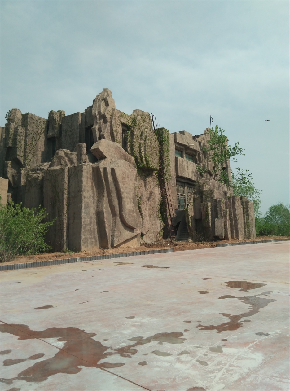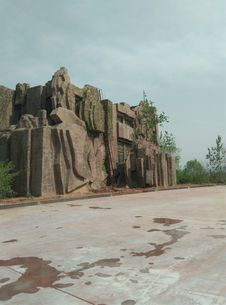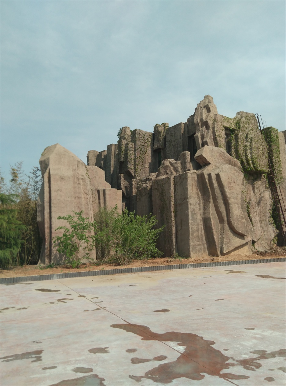 2010年,濟南章丘植物園入口假山。水泥塑形,表面著色做效果。