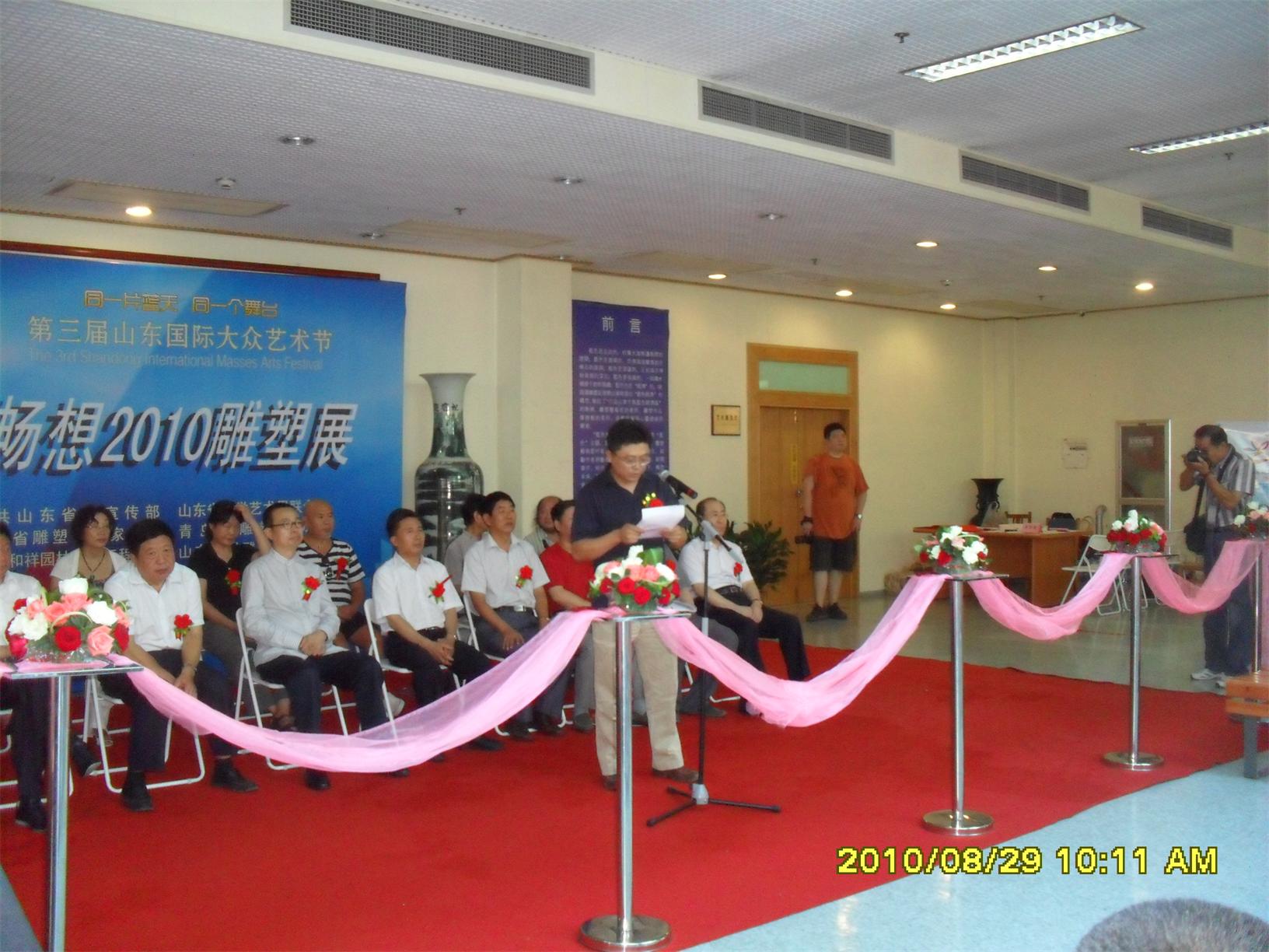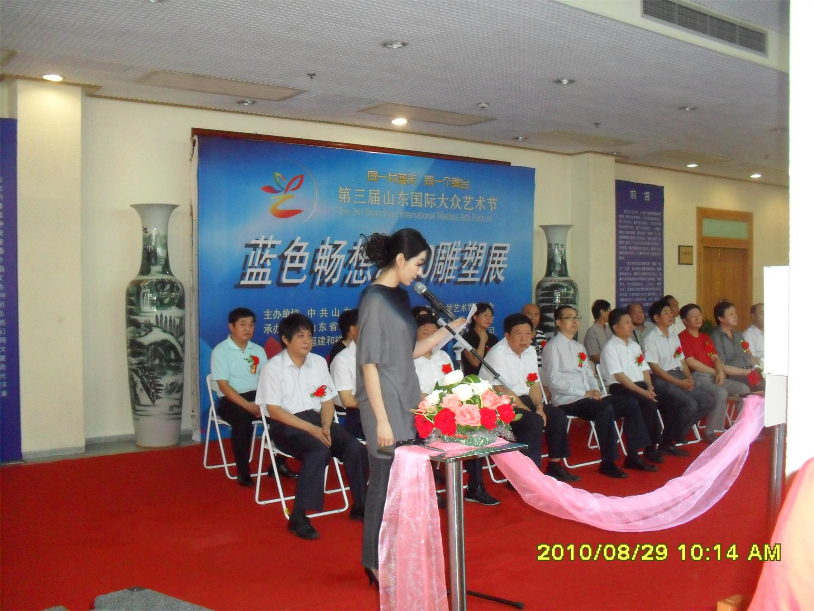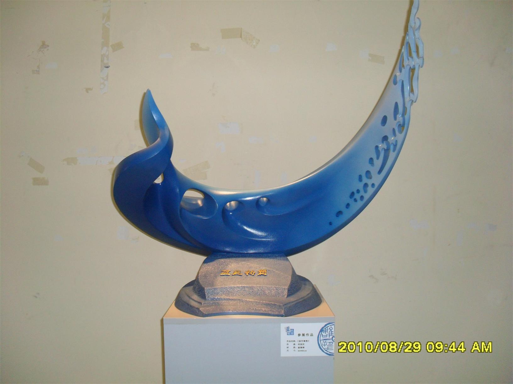 藍(lán)色暢想2010雕塑,2010年8月29日,由中共山東省委宣傳部、山東省文學(xué)藝術(shù)界聯(lián)合會(huì)主辦,山東省雕塑藝術(shù)家協(xié)會(huì)、青島雕塑家協(xié)會(huì)承辦的第三屆山東國(guó)際大眾藝術(shù)節(jié)--藍(lán)色暢想2010雕塑展在山東省圖書館隆重開幕。  "藍(lán)色暢想2010雕塑展"吸引了省內(nèi)外大批中青年雕塑家的參與,展覽共收到101位雕塑藝術(shù)家的126件入圍作品。其中省內(nèi)中青年雕塑藝術(shù)家占絕大多數(shù),圍繞"藍(lán)色"主題,堅(jiān)持創(chuàng)造、創(chuàng)新理念,創(chuàng)作了大批優(yōu)秀的雕塑藝術(shù)作品,語(yǔ)言生動(dòng),內(nèi)容多樣,借助不同材質(zhì)和多元化的藝術(shù)風(fēng)格,對(duì)藍(lán)色精神進(jìn)行了深入的闡釋。李友生的《海風(fēng)倩影》、王未的《藍(lán)色暢想》、譚信國(guó)的《蘋果系列》等作品,均對(duì)雕塑藝術(shù)內(nèi)涵進(jìn)行了深入的探索。
